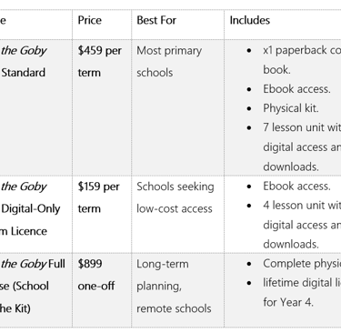 All hire packages include usage rights for all Year 4 teachers in the school for the duration of the term.
